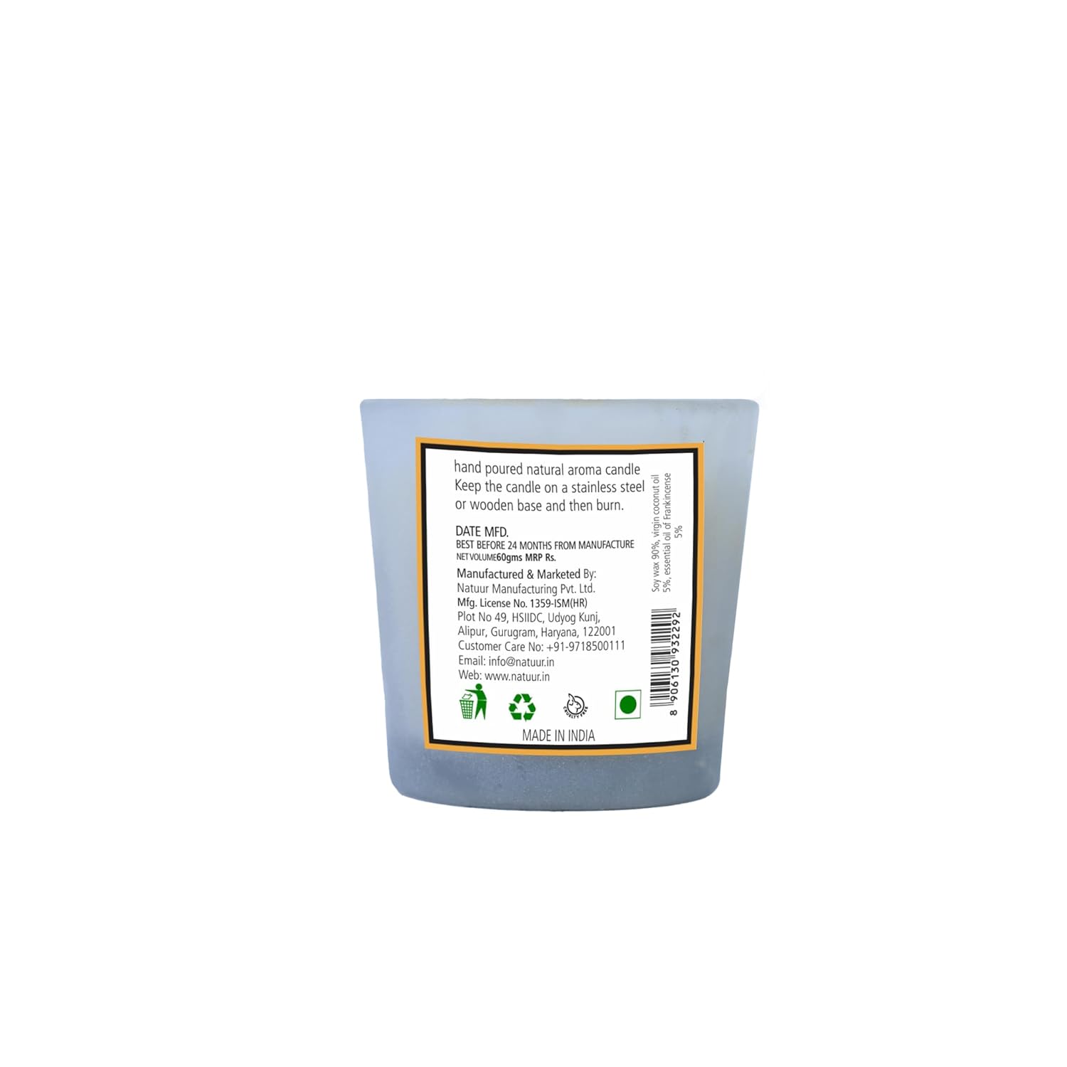 Soy Wax Candle Frankincense Jar Of 60 Gm